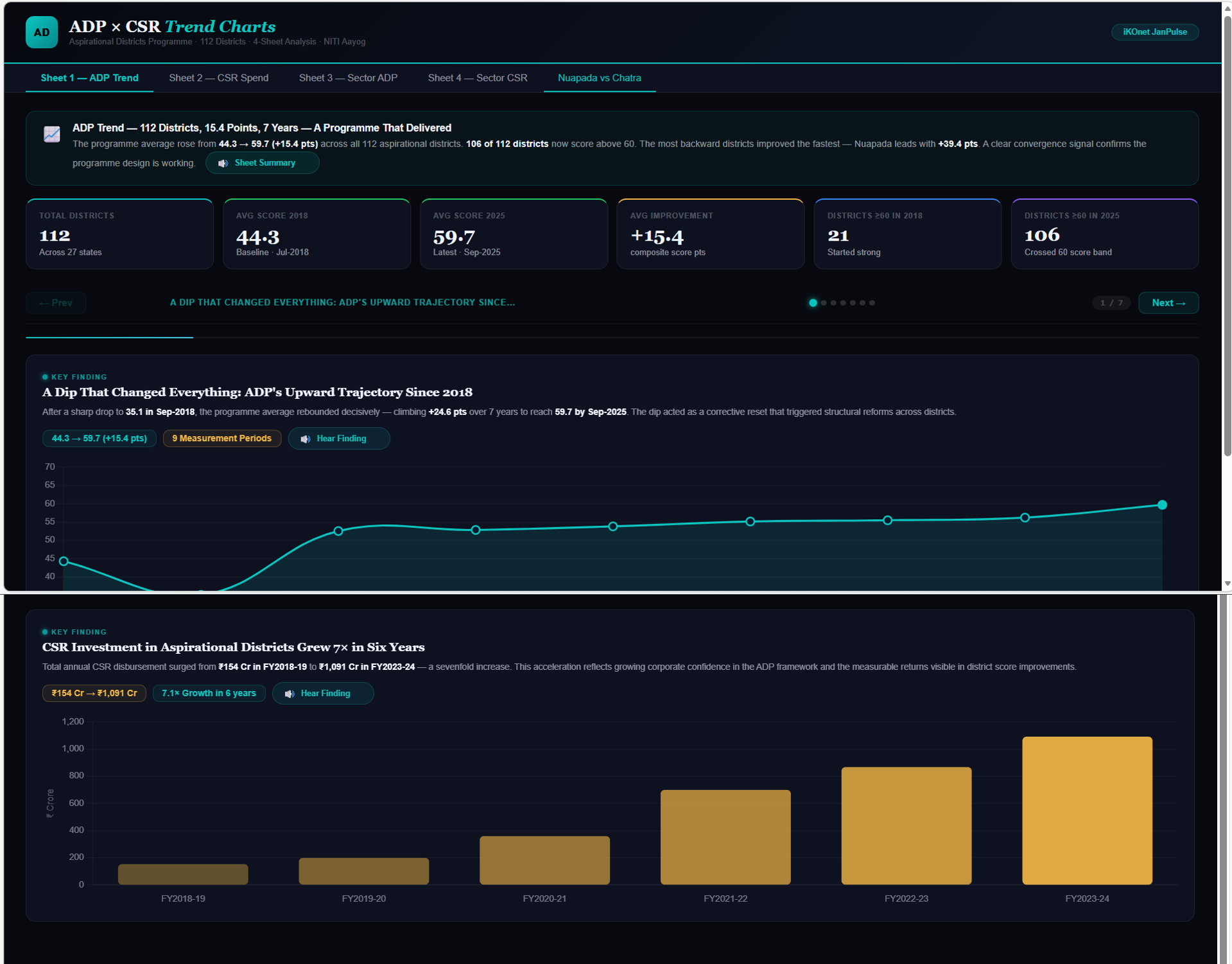 Interactive data dashboards that transform complex datasets into real-time insights for monitoring programs and tracking key indicators.